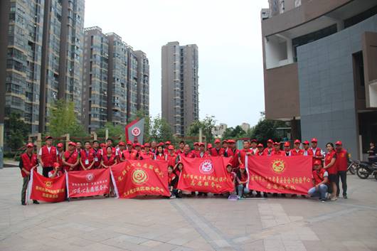 志愿者們在文昌花園社區(qū)志愿者服務(wù)廣場合影