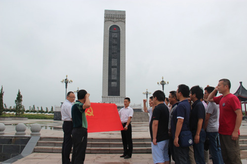 在紀(jì)念碑下,全體黨員面對鮮紅黨旗舉起右手高聲宣誓,重溫入黨誓詞,表達(dá)為黨的事業(yè)奮斗終身的決心。隨后,全體人員在革命烈士紀(jì)念碑前,全體肅立,向革命先烈默哀致敬,行三鞠躬禮,追思革命先烈的豐功偉績;顒幼詈髤⒂^了革命烈士紀(jì)念館,進一步了解革命先烈們艱苦卓越的斗爭歷史和大無畏的革命獻(xiàn)身精神。