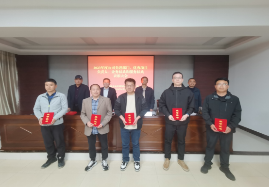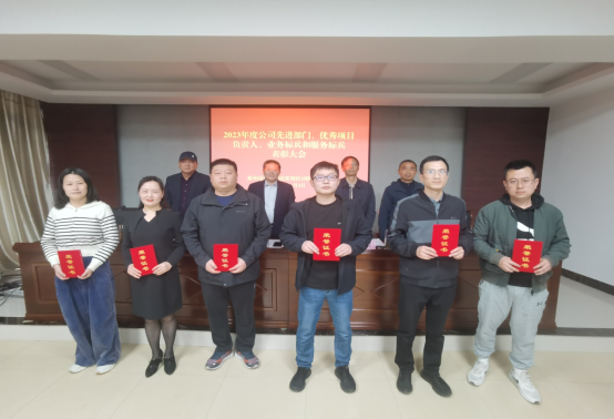 根據(jù)會議議程,公司董事、副總經(jīng)理王士才同志宣讀了《關(guān)于表彰2023年度公司先進部門、優(yōu)秀項目負責人、業(yè)務標兵和服務標兵的決定》,公司領導給獲得表彰的先進部門、優(yōu)秀項目負責人、業(yè)務標兵和服務標兵頒發(fā)獎牌和獲獎證書。