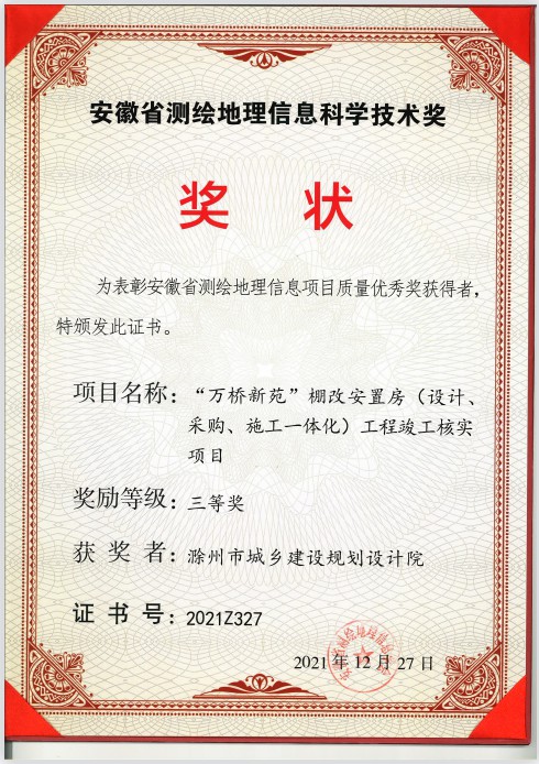 安徽省測繪地理信息科學(xué)技術(shù)獎(jiǎng)三等獎(jiǎng)